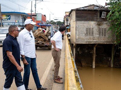 El ministro de Vivienda y Edificaciones, Ito Bisonó, viajó a Gaspar Hernández para revisar los daños causados por las fuertes lluvias y el desbordamiento del río Joba, que afectaron casas y el entorno del municipio. Prometió que el ministerio reparará las viviendas dañadas a través del programa Dominicana Se Reconstruye.